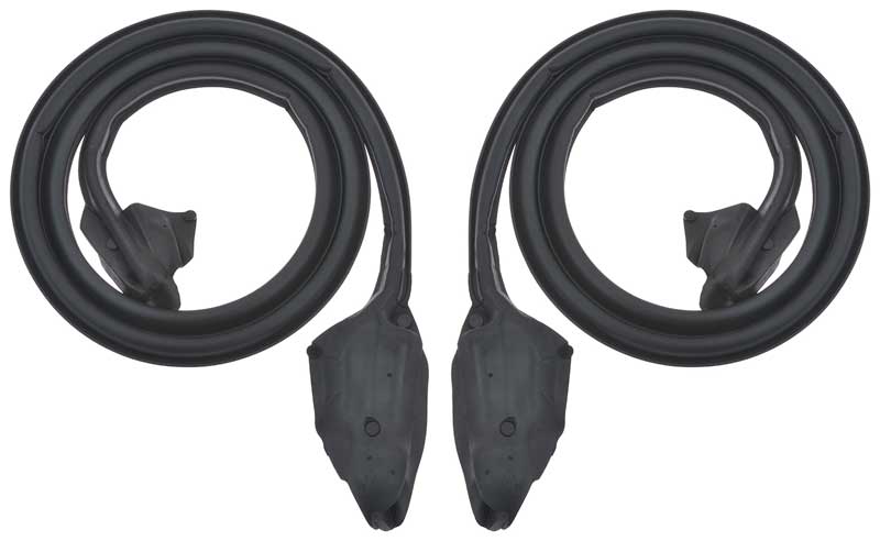 Reproduction door frame weatherstrip for 1973-76 Dodge and Plymouth A-body models. This replacement door frame weatherstrip is designed to factory specifications and manufactured in rubber to correctly replace your brittle, cracked, torn, or missing original weatherstrip. Features pre-attached plastic pin and correctly molded ends for a tight seal. Includes RH and LH door weatherstrips. Sold in pairs