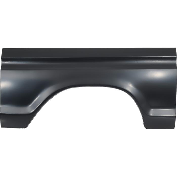 Reproduction OE style outer bedside / bedskin extension wheel arch for 1973-79 Ford F-Series StyleSide pickup trucks. This stamped 19 gauge steel bedside features the correct shape, size, length and holes to fit like original. Measures 59" wide x 25-1/2" tall. Replaces the center section of the outer bedskin. Comes with a black EDP coating for rust and corrosion prevention. For use on the RH passenger side.