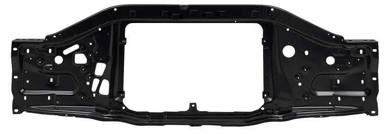Reproduction radiator core support for 1973-79 F-Series pickup trucks, and 1978-79 Bronco models with 2 mounting holes for round headlamps. Each radiator support is manufactured to correct factory specifications offering an authentic appearance and fit. This support installs between the inner fenders in the front of the engine compartment and provides a solid mounting point for the radiator. Comes finished in black EDP coating for rust and corrosion prevention. Replaces Ford part# D3TZ-16138-B.