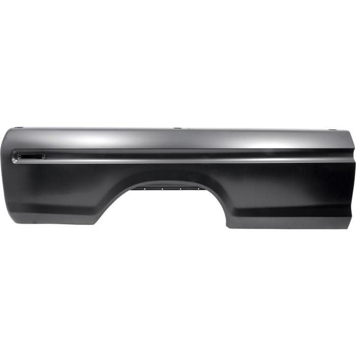 Reproduction OE style full bedside panel for 1973-79 Ford F-Series StyleSide long-bed pickup trucks. This panel features the correct shape, size, length and holes to fit like original. Arrives EDP coated to help protect against rust and corrosion. Replaces OE # D6TZ-9927840-B