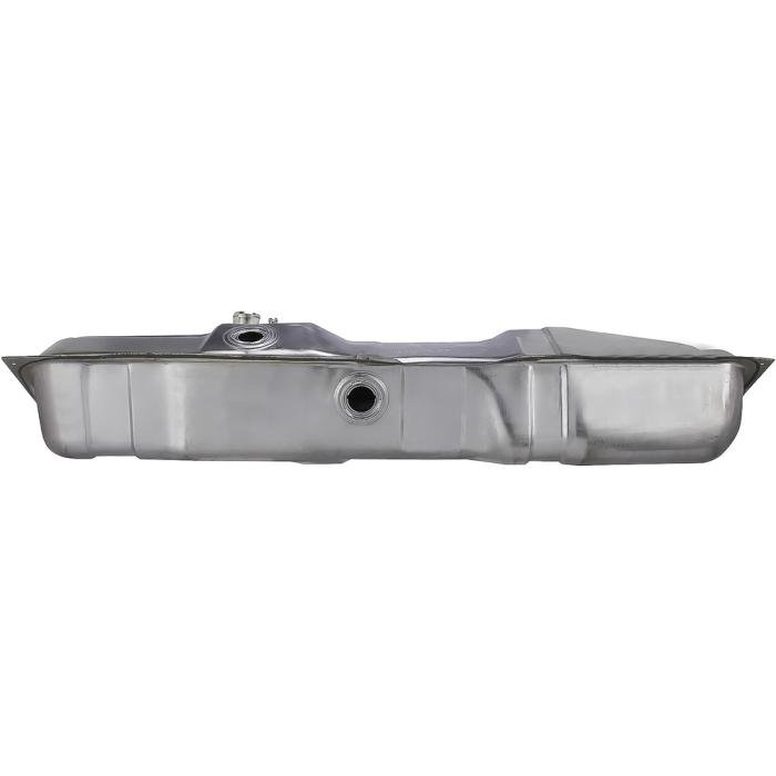 Reproduction side mount gas tank for 1973-79 Ford F-100, F-150, F-250, F-350 Pickup Trucks with EEC. This direct replacement steel tank installs in the stock location using the original hardware. Tank measures 60 in. x 14 in. x 13-1/2 in and holds 20.2 gallons of fuel. Features two sending unit holes. Straps not included, sold separately. Replaces OE # D8TZ-9002-K.