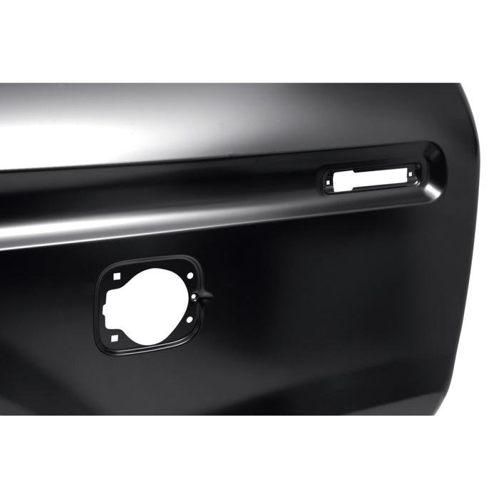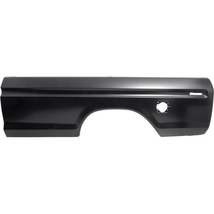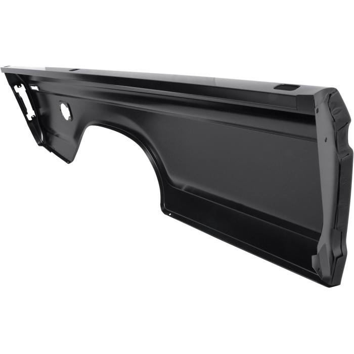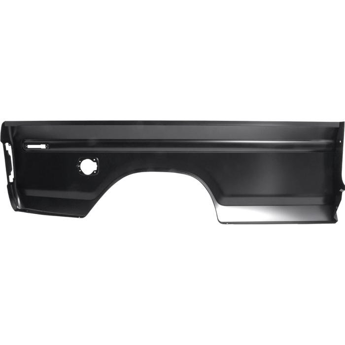 Reproduction driver-side outer bedside / bedskin for 1973-79 Ford F-Series StyleSide long-bed pickup trucks with single fuel door. This stamped 19 gauge steel bedside features the correct shape, size, length and holes to fit like original. Arrives EDP coated to help protect against rust and corrosion.