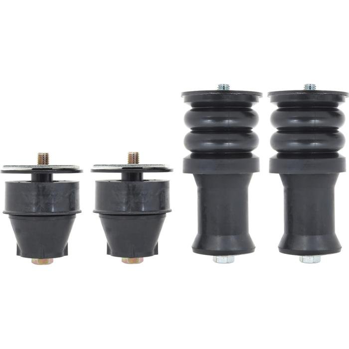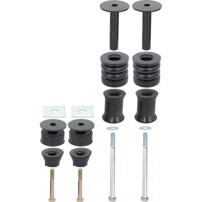 Reproduction of the original front and rear cab mount bushing set for 1973-80 Chevrolet and GMC 1/2 ton 4WD or 3/4 ton Pickup models. Each 20-piece bushing set includes upper and lower bushing, bolts and spacers/washers.