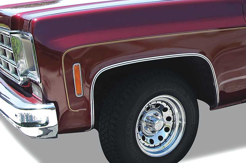 OER® Authorized reproduction of the original front wheel opening molding for 1973-80 Chevrolet and GMC truck and SUV models. Each molding is manufactured in quality stamped aluminum to factory specifications. Features a bright finish with an indented black accent stripe as original. Will fit and install as original. Includes mounting hardware. Replaces OE # 328843.