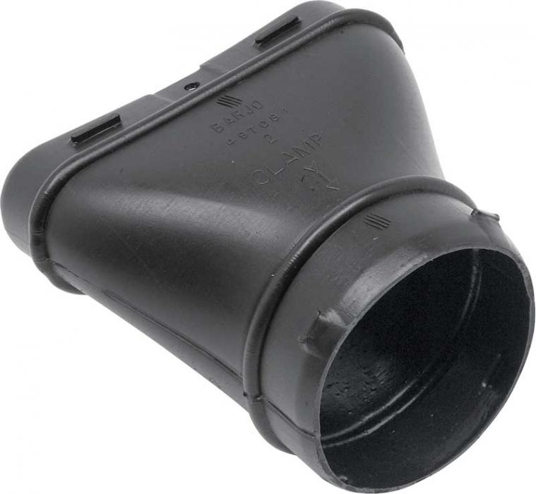 Reproduction of the original air cleaner duct housing adapter used on 1973-81 Pontiac Trans Am models. This housing mounts on the air cleaner and converts the 2" x 6" oval hole on the air cleaner to the 4" round air duct hose on the fender air scoop.