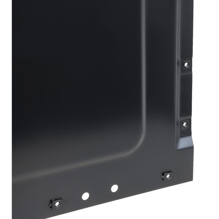 Reproduction front bed panel for 1973-84 Chevrolet and GMC Fleetside pickup truck models. Each panel is manufactured in 1.2mm stamped steel and features the correct seams and pre-punched bed side mounting holes for 1973-84 models. Will fit 6.5 foot, or 8 foot beds. Comes finished in black EDP coating for rust prevention.