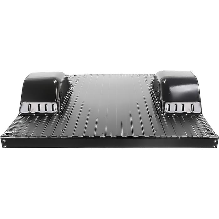 Tubbed full bed floor panel set for 1973-86 Chevrolet and GMC and 1987-91 Fleetside short bed models. Each complete bed floor panel mini-tub kit is manufactured in quality stamped steel and comes with the lower bracing and both the LH and RH mini-tubs. Not for use on stepside models. Comes with bolt set that attaches the wheel houses to the bed on steel bed fleetside trucks. Floor and 4" wider tubs come finished in black EDP coating for corrosion resistance.