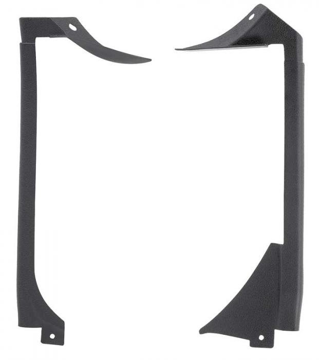 Reproduction lower pillar side moldings for 1973-91 models. These black ABS plastic moldings install vertically between the upper front pillar post moldings and the lower kick panels under the dash.