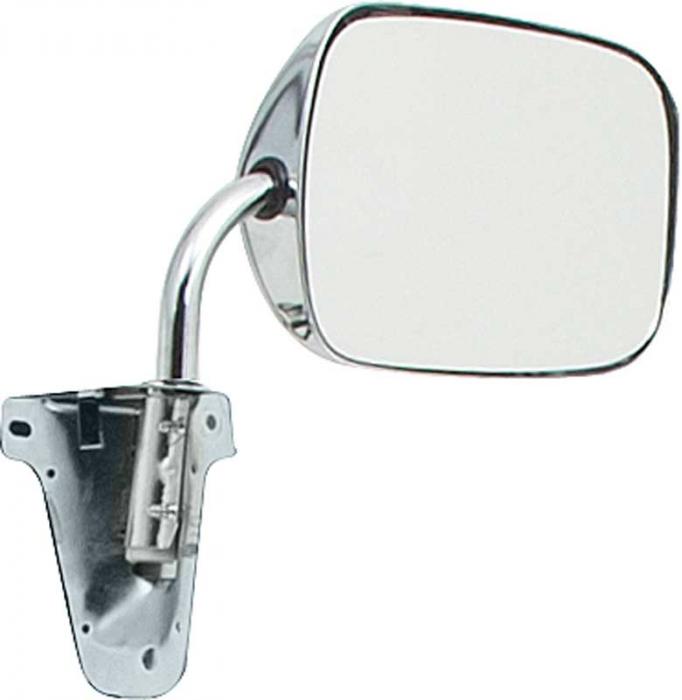Reproduction of the original style low mount outer door mirror for 1973-87 Pickup, Blazer, Jimmy and Suburban. The stainless steel mirror head measures 9" x 6-1/2". Fits left hand (driver side) or right hand (passenger side). Includes mounting hardware and gasket.