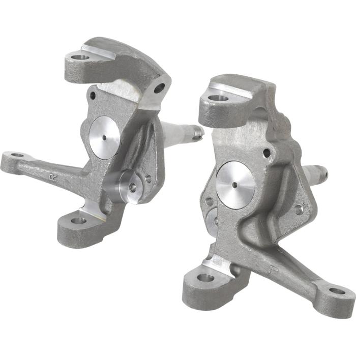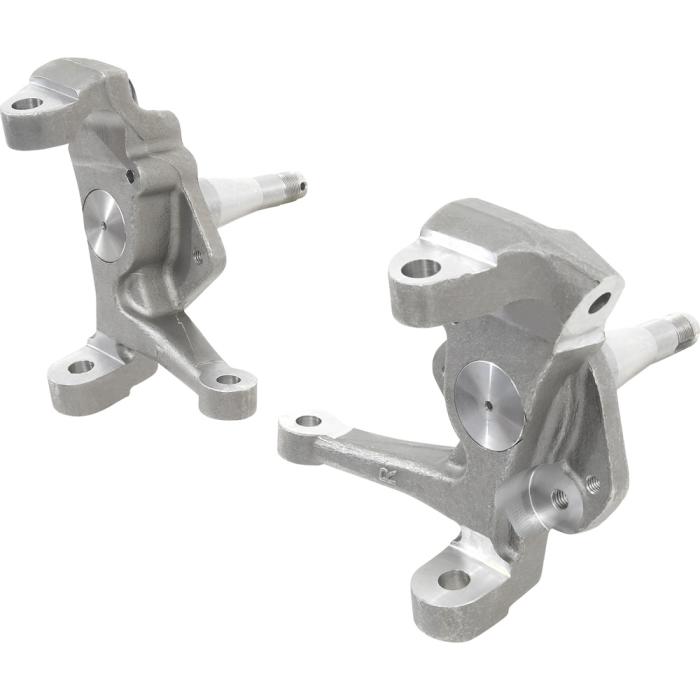 Our Mustang II drop spindles are built from forged steel and heat treated for superior strength. Designed to drop the front end approximately 2" lower than stock while maintaining stock geometry. Will fit 1974-78 Ford Mustang, 1974-80 Ford Pinto, and 1975-80 Mercury Bobcat. Mustang II style spindles are also extremely popular for use on street rod applications due to the wide array of rotor sizes, and compatibility with a wide range of brake calipers.