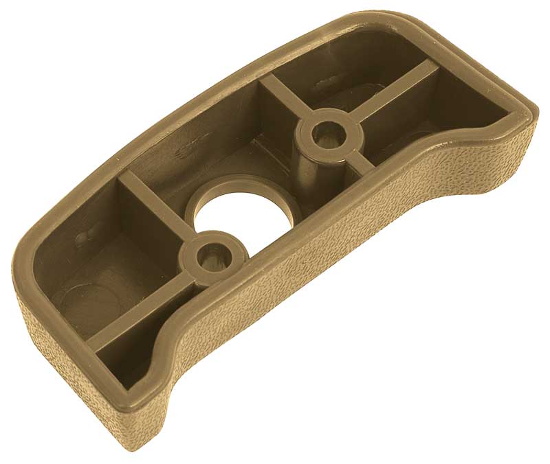 Reproduction of the original shoulder belt guide escutcheon designed to hold the shoulder belt retainer to the upper portion of the bucket seat back. Manufactured in injection molded ABS material to replicate the original design. Includes correct grain and mounting points. This item is commonly overlooked during the replacement of seat upholstery and seat/shoulder belt related items. LH drivers side. Available in Buckskin. Paintable to desired color.