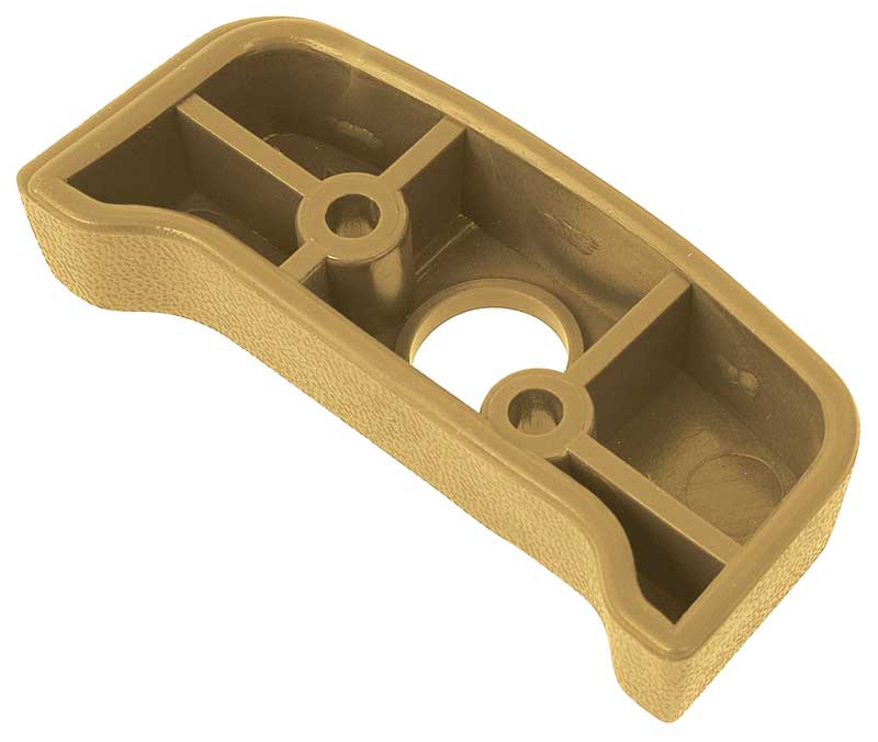 Reproduction of the original shoulder belt guide escutcheon designed to hold the shoulder belt retainer to the upper portion of the bucket seat back. Manufactured in injection molded ABS material to replicate the original design. Includes correct grain and mounting points. This item is commonly overlooked during the replacement of seat upholstery and seat/shoulder belt related items. LH drivers side. Available in Buckskin. Paintable to desired color.