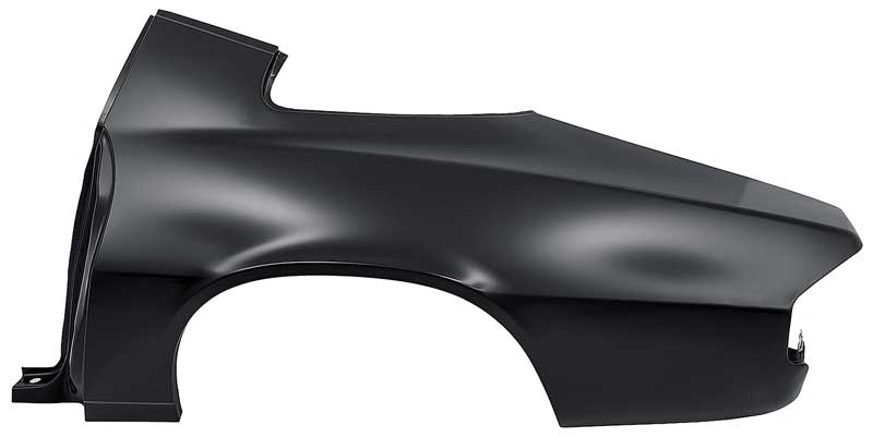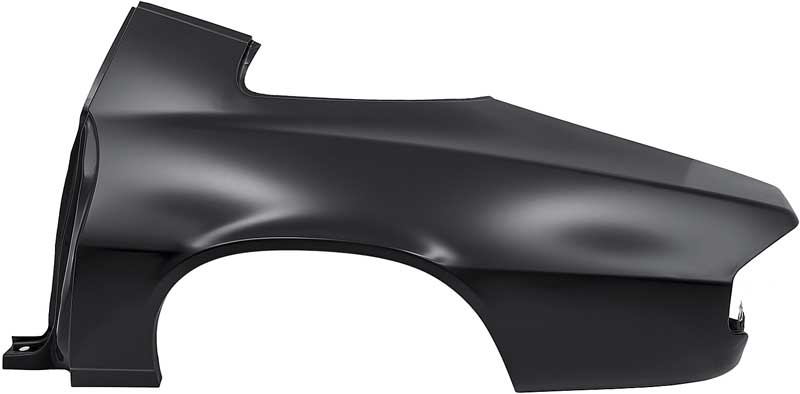 Reproduction full quarter panel for 1975-81 Camaro models with rear spoiler. Each quarter panel is manufactured in quality stamped steel and matches the original in both quality and fitment. Not just a replacement skin, this panel replaces the entire quarter panel section including the door jamb, trunk gutter, partial upper sail panel, and more. Designed to attach at the original factory seams for a clean, precise installation. Ready to be prepped, primed, and painted without stripping.
