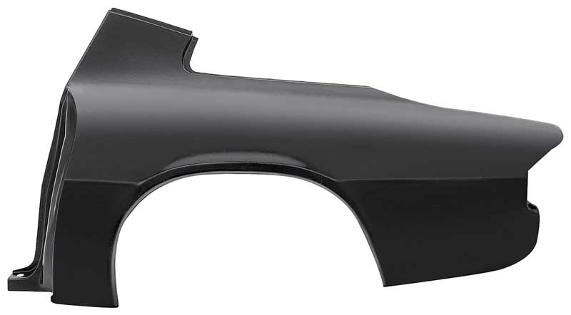 Reproduction full quarter panel for 1975-81 Camaro models with rear spoiler. Each quarter panel is manufactured in quality stamped steel and matches the original in both quality and fitment. Not just a replacement skin, this panel replaces the entire quarter panel section including the door jamb, trunk gutter, partial upper sail panel, and more. Designed to attach at the original factory seams for a clean, precise installation. Ready to be prepped, primed, and painted without stripping.