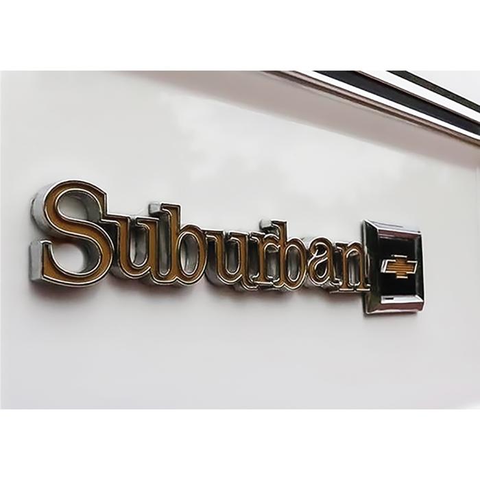 Reproduction rear barn door emblem for 1975-86 C/K and 1987-88 R/V Suburban models with barn door style rear cargo doors. Each emblem is designed and manufactured to replicate the original for an authentic appearance and fit. Chrome emblem with gold and black accents installs on the RH passenger side rear barn door. Attaches with 3 mounting pins. Replaces original GM part number # 14016626.