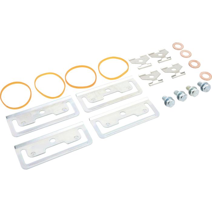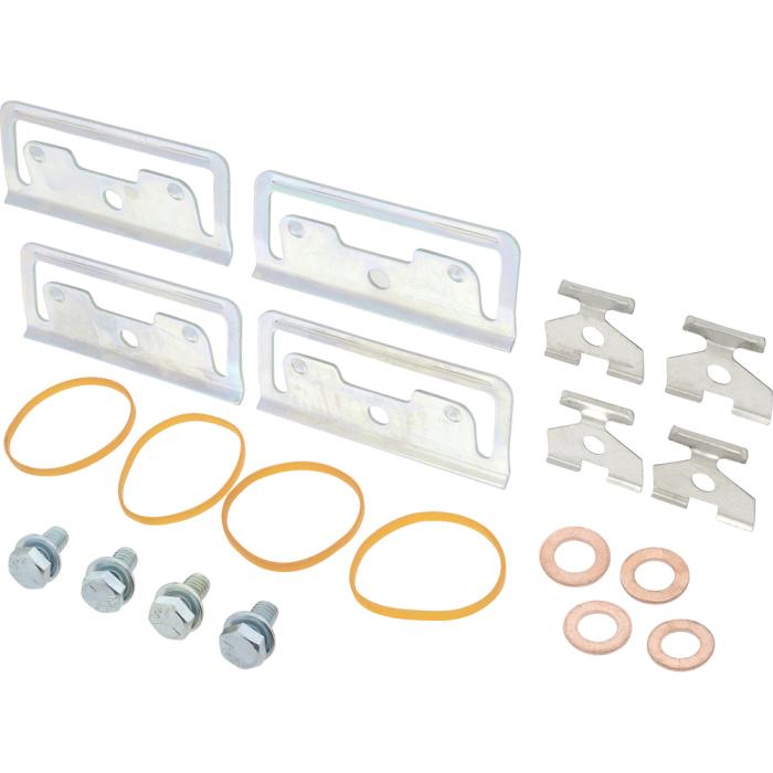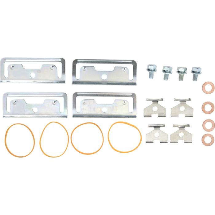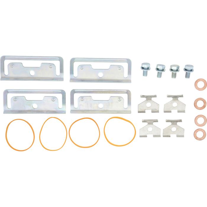 Brake pad hardware set for the 1973-89 Mopar front SLIDER type calipers. This hardware will fit 1973 and newer SLIDER type calipers found on many Mopar A,B,E,F,M,J and R bodies equipped with original disc brakes. They will also fit most of the OEM type Mopar front disc brake conversion kits for earlier model Dodge and Plymouth vehicles that are being converted from drum brakes to disc brakes. Sold in a 16-piece set. Brake pads and calipers are available separately. Refer to 154905 for the pads and 154906 for the hardware set.