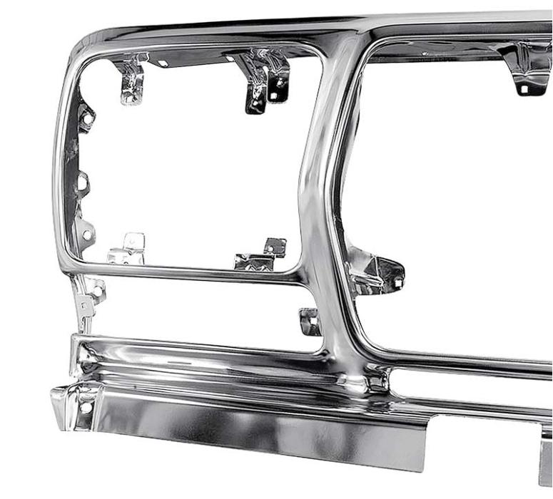 Reproduction anodized aluminum front grill shell for 1978-79 Ford F-100, F150, F-250, F-350 pickup trucks, and 1978-79 Bronco models. Each grill is manufactured using quality, high-grade stamped aluminum with a durable chrome like polished finish. Replaces Ford part number # D8TZ-8200-A.