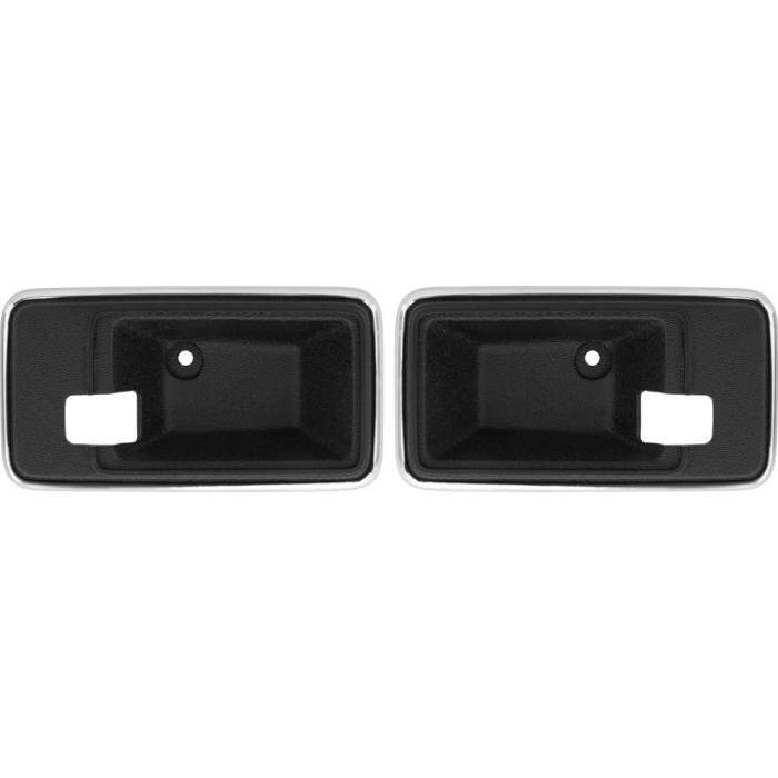 Reproduction of the original inner door handle escutcheon designed for use on 1977-81 Camaro and Firebird models. Manufactured from injection molded ABS to factory specifications that replicates the original in quality and design. The inner door handle escutcheons install in the door panel over the die-cast inner door handle assembly and snaps into place with two integral clips that are molded into the escutcheon. Escutcheons are available in black. Paint to match any interior color. Replace your worn out or missing inner door handle escutcheons with these OEM style reproductions. Sold in pairs.