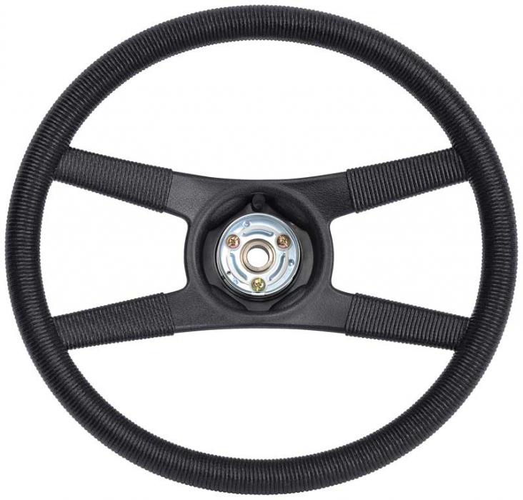 Reproduction of the original Z-28 4-spoke sport steering wheel designed for use on 1978-81 Camaro Z/28 models. Each steering wheel is manufactured to correct OEM specifications and features the correct simulated rope wrapped design. Includes the steering wheel and horn cap mounting set without the horn button or emblem (sold separately).