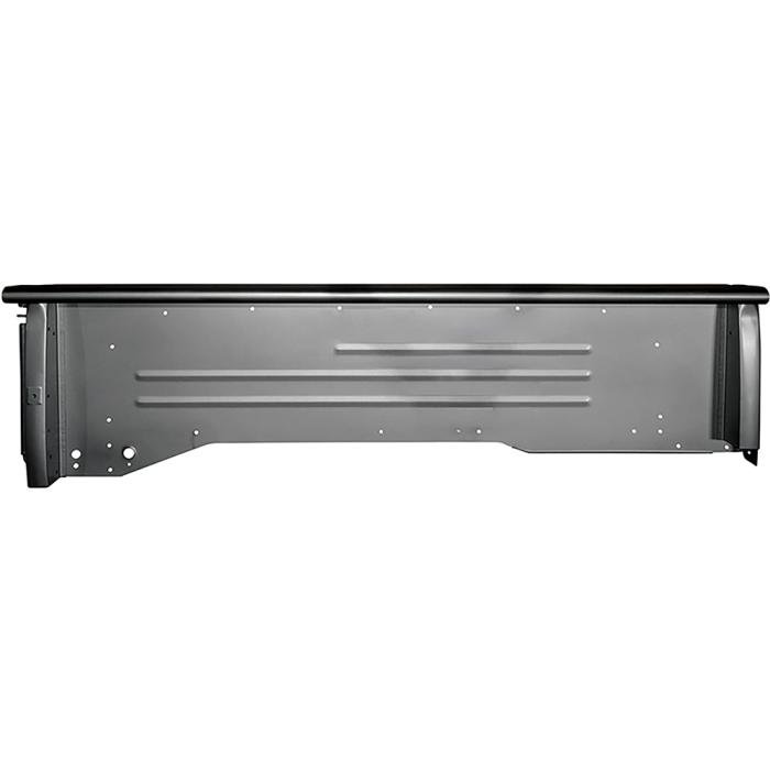 Reproduction bed side panel for 1977-87 short bed stepside pickup models. Manufactured from stamped steel with stake pockets, as original, and various mounting holes pre-punched for ease of installation. Fits Right Hand (Passenger) Side.