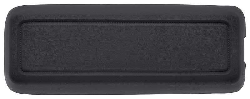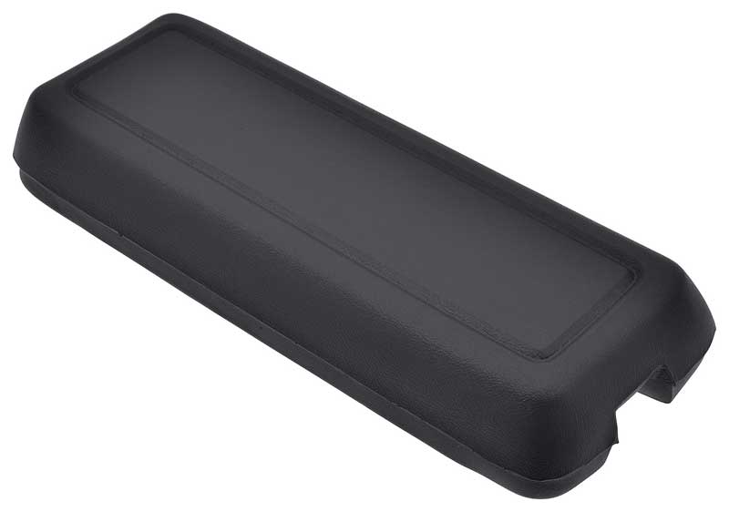 Reproduction arm rest pad for 1979-86 Mustang models. Manufactured to factory specifications from OEM quality injected molded soft urethane, featuring the correct grain textured pattern, and original mounting points.