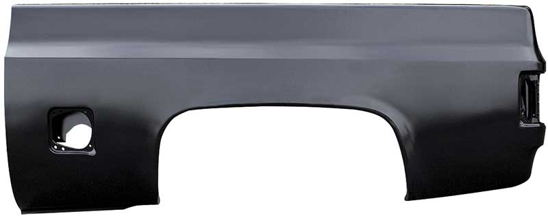 Reproduction of the original style short bed side panel for 1973-1986 Chevrolet and GMC C/K and 1987-1991 R/V Fleetside pickup truck models. Each bed panel is manufactured in quality OE gauge stamped steel to replicate the original factory panel for a total replacement of your damaged or rusted original bed side. Comes with black EDP coating for rust prevention.