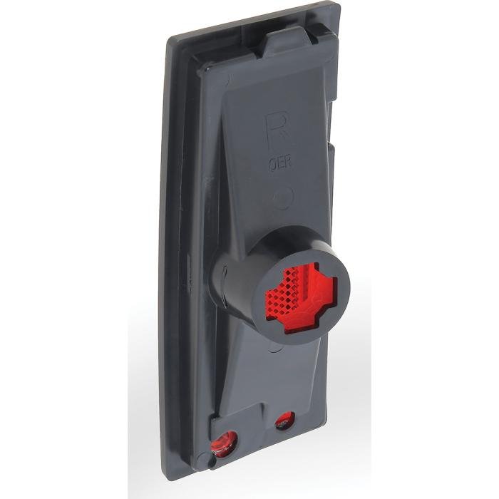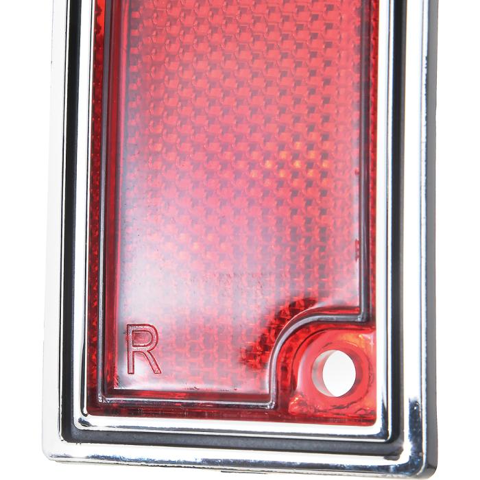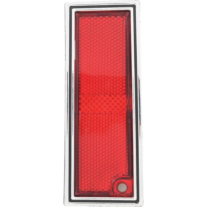 Reproduction rear side marker light assembly for 1980-90 Chevrolet Impala, Caprice and 1983-84 Pontiac Parisienne models. Each side marker lamp is manufactured to exact factory specifications. Features a red lens with black and chrome accents. For use on the RH passenger side.