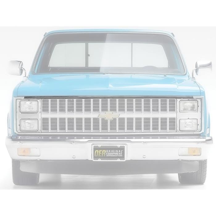Reproduction Chevrolet and GMC upper grill molding 1981-82 for pickup, Blazer, Jimmy, and Suburban. This quality polished stainless steel reproduction is manufactured to factory specifications and is ready to install. Connects at the top of the grill between the headlight bezels. Includes mounting hardware.