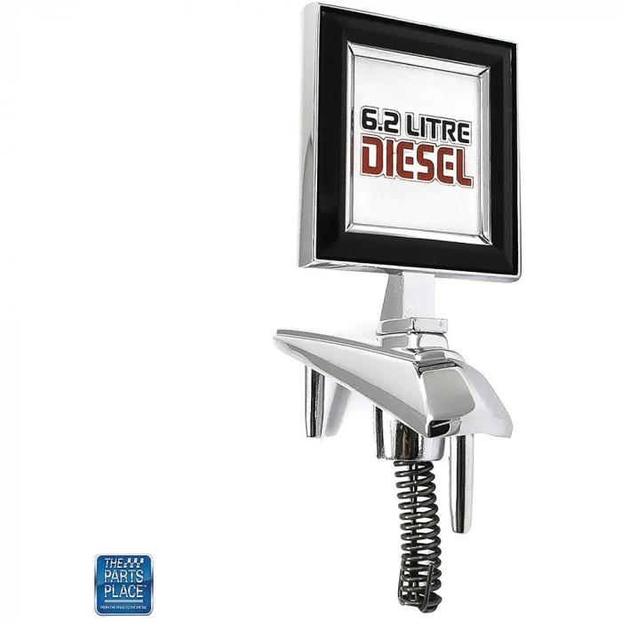 Reproduction header panel/hood ornament for 1981-87 Chevrolet and GMC truck models with a 6.2 litre diesel. This is an exact reproduction that is spring loaded and mounts to the hood. Replaces GM# 14037946/14032780. Does not include the gasket.
