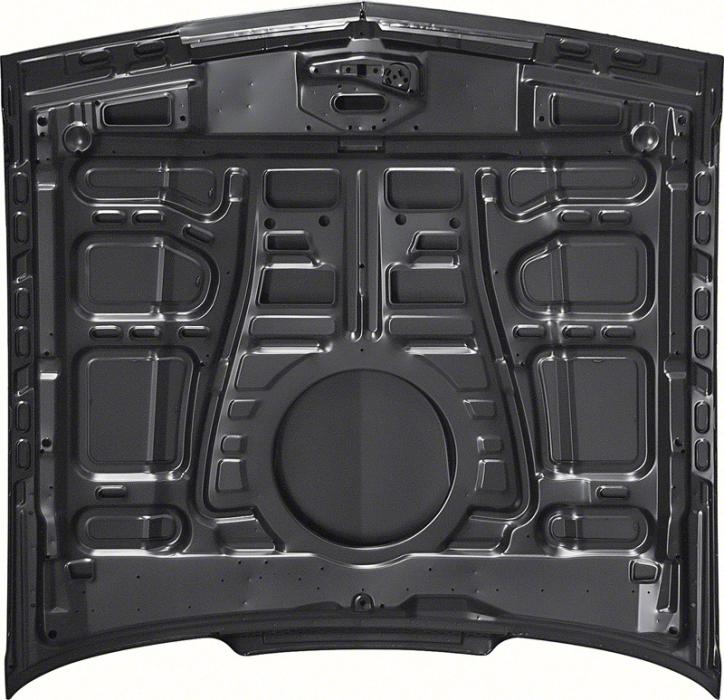 Stamped steel reproduction hood for 1982-92 Chevrolet Camaro models, designed with a cowl induction style 2-inch rise and distinctive center ridge design. This hood is perfect for the high-performance enthusiast seeking a more aggressive appearance than the standard style hood while maintaining a factory-style fit. The OE-style cowl induction scoop features a low center ridge in the scoop area for a subtle yet aggressive profile. Manufactured to factory specifications for proper fit and finish, this hood bolts directly to stock hinges and provides an OE-style fit with a performance-oriented appearance.