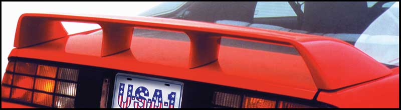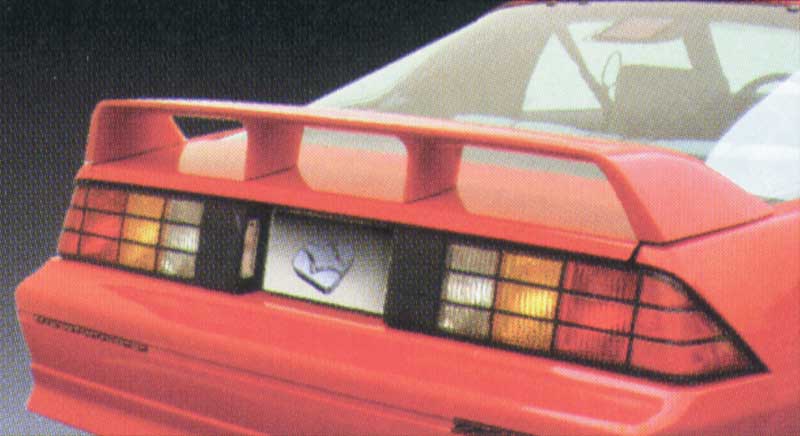 This reproduction wing for 1982-92 Camaro models is a replica of the 1991-92 Camaro Z28 aero-formed high rise rear spoiler. Manufactured in fiberglass, this wing duplicates the original for an authentic, aggressive, and outrageous factory Z28 appearance. Supplied in a gelcoat and primer finish, each spoiler must be sanded smooth, prepped, primed, and painted after all your test-fitting, adjustments, and inital installation has been completed. Will not fit convertible models.