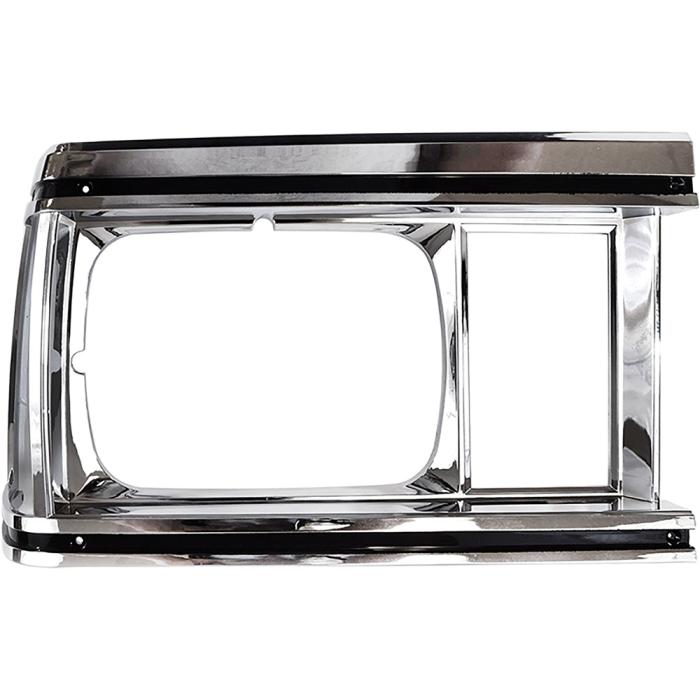 Reproduction RH headlamp bezel for 1981 El Camino, Caballero, and Malibu models. Manufactured in injection-molded ABS to factory specifications, this bezel replicates the original design with the correct chrome and black finish. Features proper contours, mounting points, and detailing for OE authenticity. RH designates the passenger side of the vehicle.