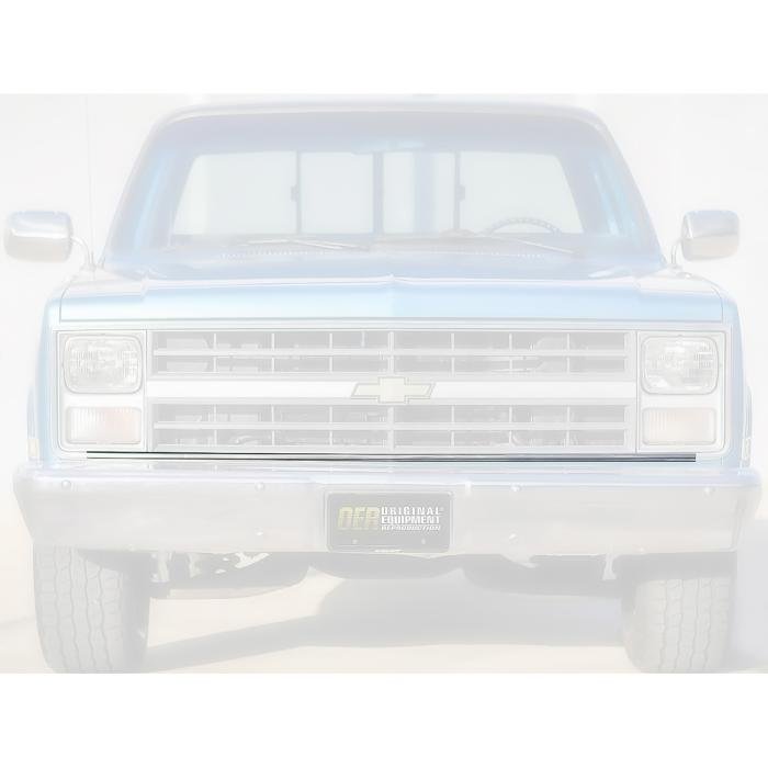 Reproduction lower grill molding for 1983-86 Chevrolet and GMC Pickup Trucks and 1983-88 Blazer, Jimmy and Suburban models. This quality reproduction is manufactured in stamped stainless steel to OE factory specifications and is ready to install. For use on the lower portion of the grill assembly between the headlamp bezels and side grill trim. Mounting studs are included. Speed nuts are sold separately..