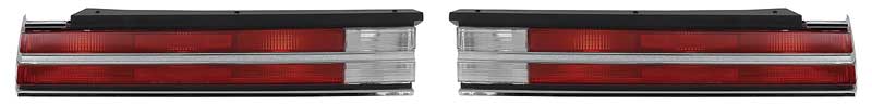 Reproduction tail lamp lens, bezel, and housing kit for 1984-87 Buick Regal, Limited, and T-Type models. All components are manufactured to replicate the original in quality, design and fitment. This comprehensive kit includes tail lamp lenses, back-up lamp lenses, chrome tail light bezels, tail light housings, plus the clip and gasket sets. Comes unassembled. Assembly is required.