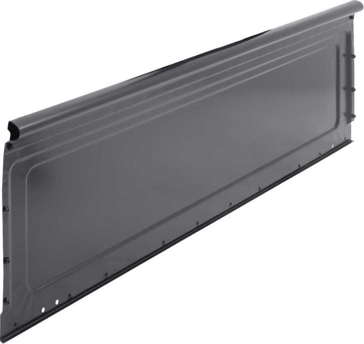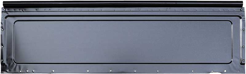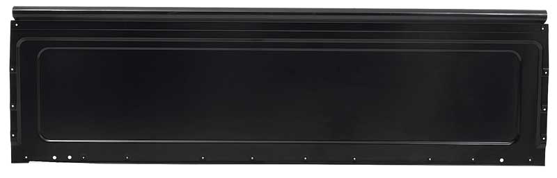 Reproduction front bed panel for 1985-86 C/K and 1987-91 R/V Chevrolet and GMC Fleetside pickup truck models. Each panel is manufactured in 1.2mm stamped steel and features the correct seams and pre-punched bed side mounting holes for 1985-91 models. Will fit 6.5 foot, or 8 foot beds. Comes finished in black EDP coating for rust prevention.
