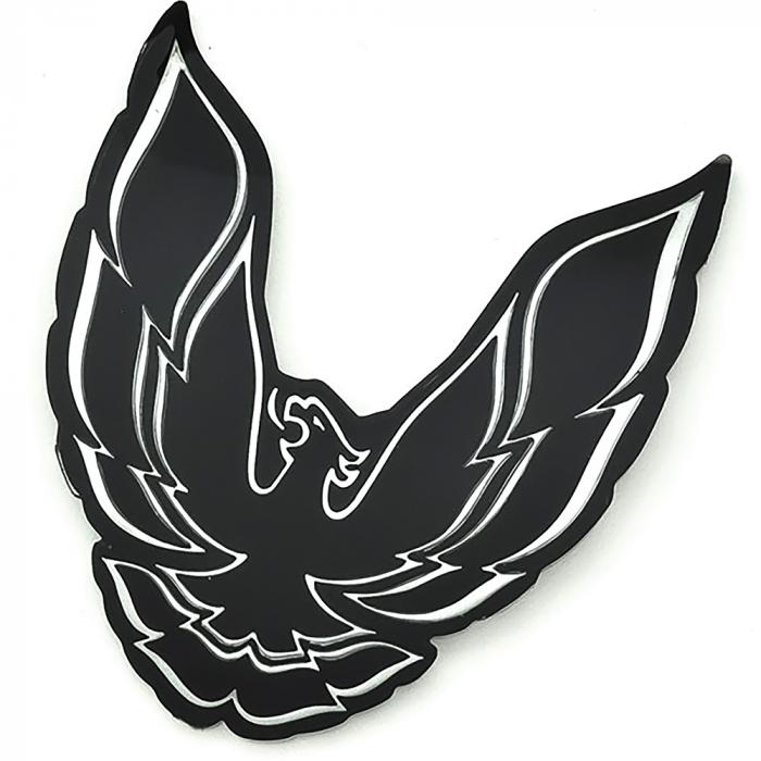 Reproduction rear panel ""Bird"" emblem for 1985-90 Trans Am models. Each emblem is designed and manufactured to replicate the original for an authentic appearance and fit. Black emblem with silver accents installs on the rear panel between the tail lights. Attaches with 3M adhesive backing. Replaces original GM part number # 10034413.