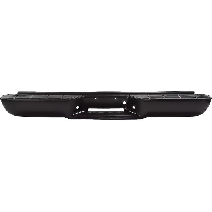 Reproduction rear step bumper for 1988-00 Chevrolet/GMC C/K GMT400 series fleetside pickup. Each step bumper is equipped with a molded polymer step pad on the top bumper surfaces for a better grip when using the bumper as a step to get into and out of the pickup bed. Features a recess area for the license plate, and a ledge to mount a trailer hitch if desired. Simply knock out the plastic filler to bolt on a hitch ball (not included). Each bumper comes equipped with license plate lamps for proper illumination of license plate. Finished in black. Mounting brackets and hardware are sold separately.