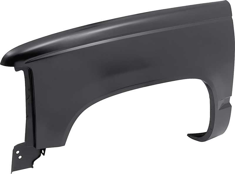 Reproduction front fender for 1988-2007 Chevrolet and GMC GMT400 models. Each front fender is manufactured in quality stamped steel replicating the original in quality, design, and fitment. These reproduction front fenders fit 2 door and extended cab pickup models.