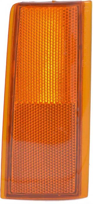 Reproduction front side marker lens for 1988-00 Chevrolet and GMC C/K pickup and SUV models without chrome grill and with single sealed beam headlamps. Each side marker lens assembly features the correct shade of amber and is produced by the OE factory for an authentic fit and appearance. Fits RH passenger side.