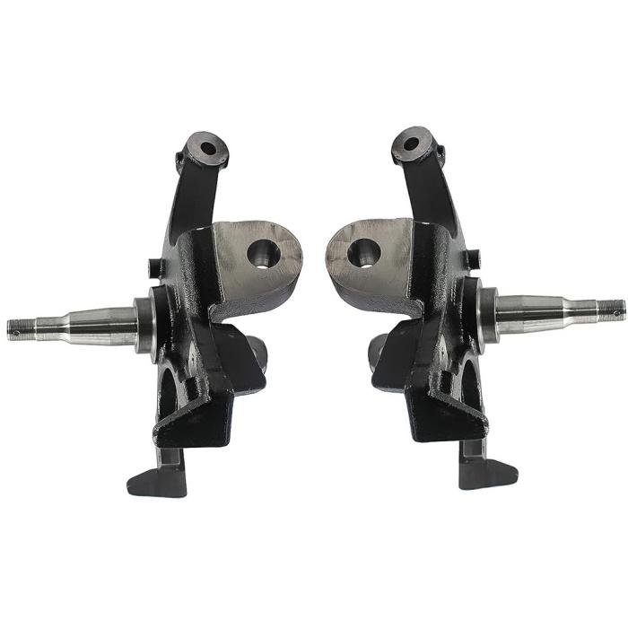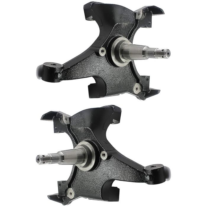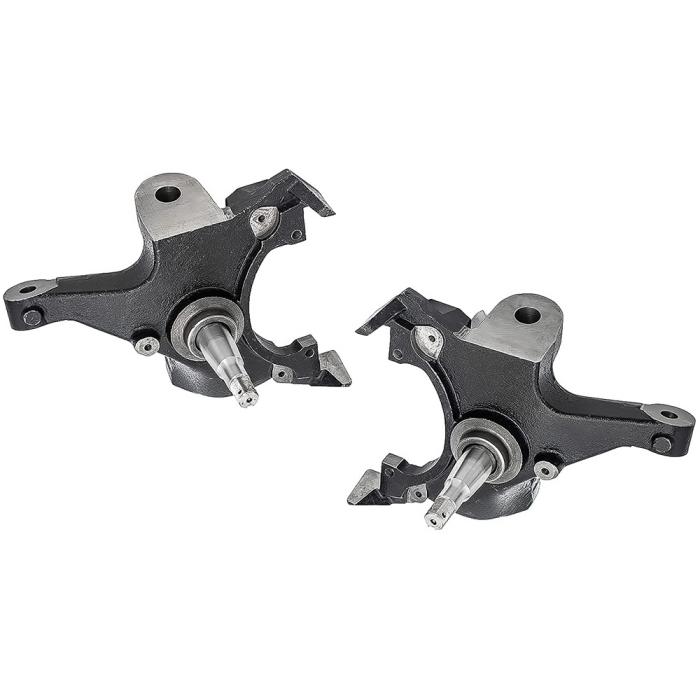 Drop spindles are the best way to lower you truck while maintaining a stock ride and handling. This kit includes a pair of 2" lowering spindles for 1/2 Ton, 2WD models with stock rotors. Produced in high grade iron material for superior durability. This set is designed to provide a 2" drop that maintains a comfortable ride quality. Includes RH and LH spindles. Sold in pairs.