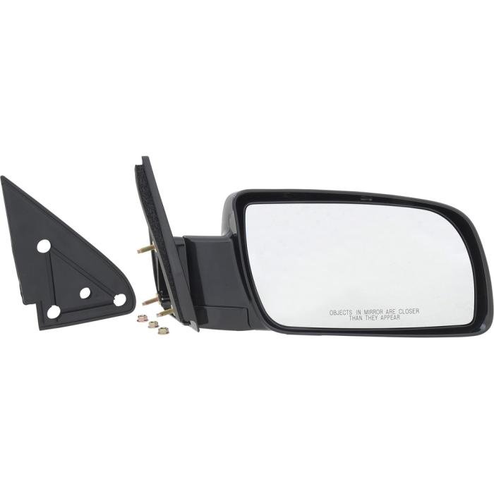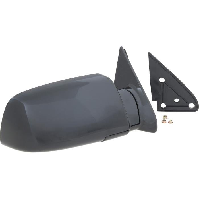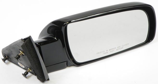 Reproduction manual side view mirror with zinc die-cast base for 1994-00 Chevrolet and GMC C/K pickup, Blazer, and Tahoe models. Each mirror is precision engineered to factory specifications for proper fit, finish, and performance. Designed as a direct replacement for the original manual mirror, it features a sturdy die-cast base and a smooth black finish that can be painted to match the vehicle.