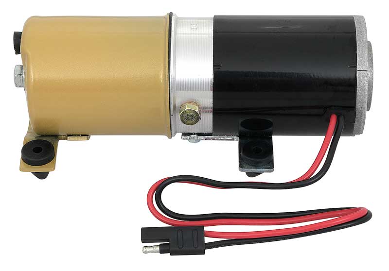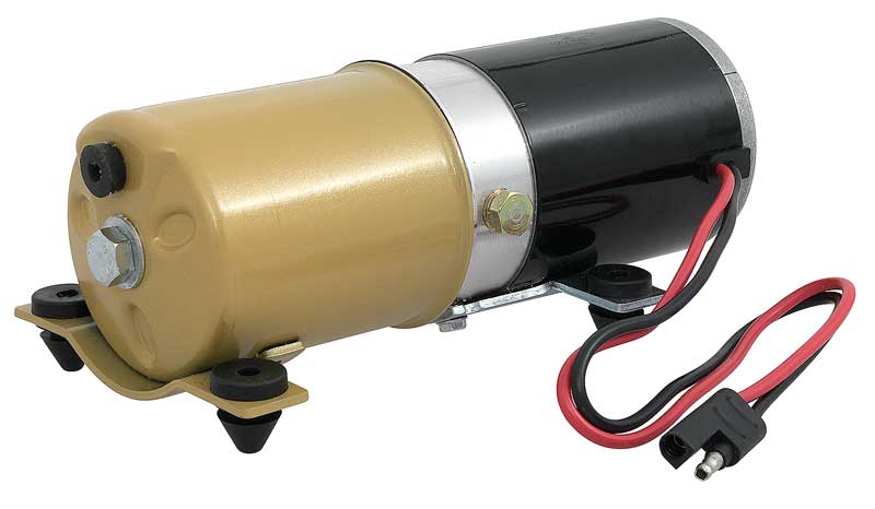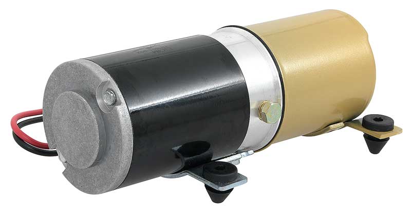Reproduction top motor made to provide consistent hydraulic pressure and dependability. Raise and lower the power top with ease with 300-325 psi. The motor comes complete with rubber mounts. Please note that the electrical connector on this motor may be different than your original connector. For that reason splicing the wiring may be necessary during installation.