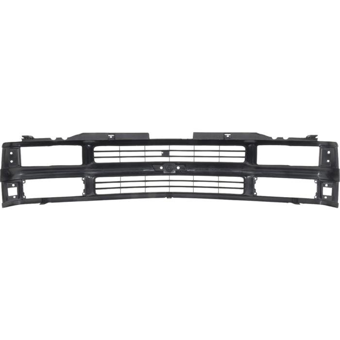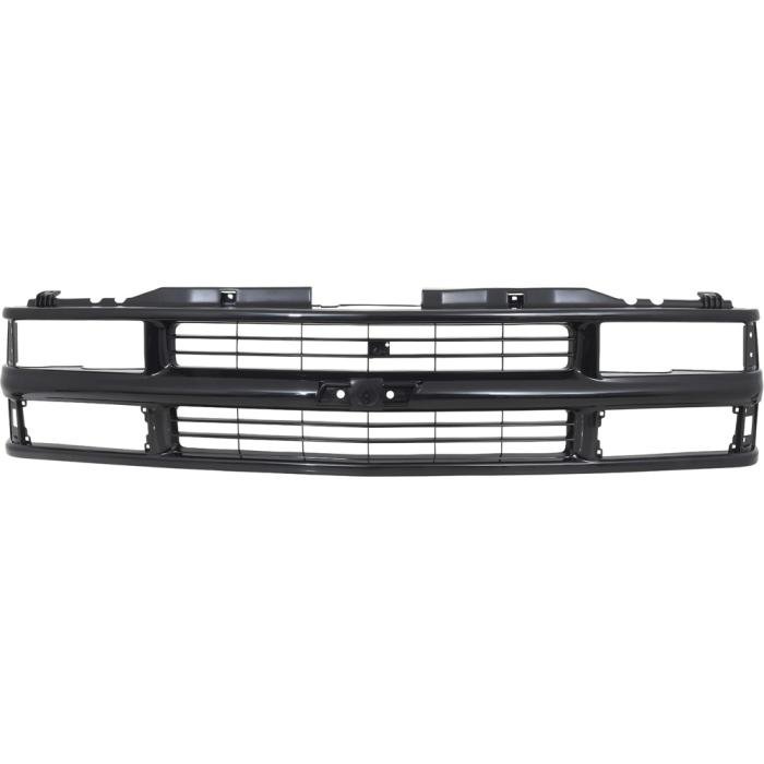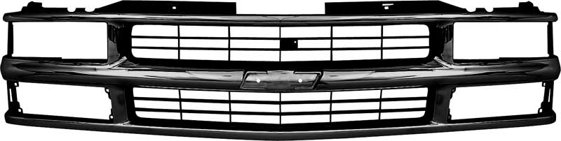 Reproduction black plastic grill for 1994-2000 GMT Series models with dual composite headlamps and without chrome package. This reproduction is designed to replace the original exactly. Re-use your old emblem or purchase a new emblem sold separately. NOTE: Not for use with GMT800 Silverado models after 1999 body-style change.
