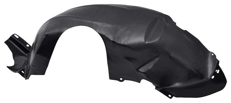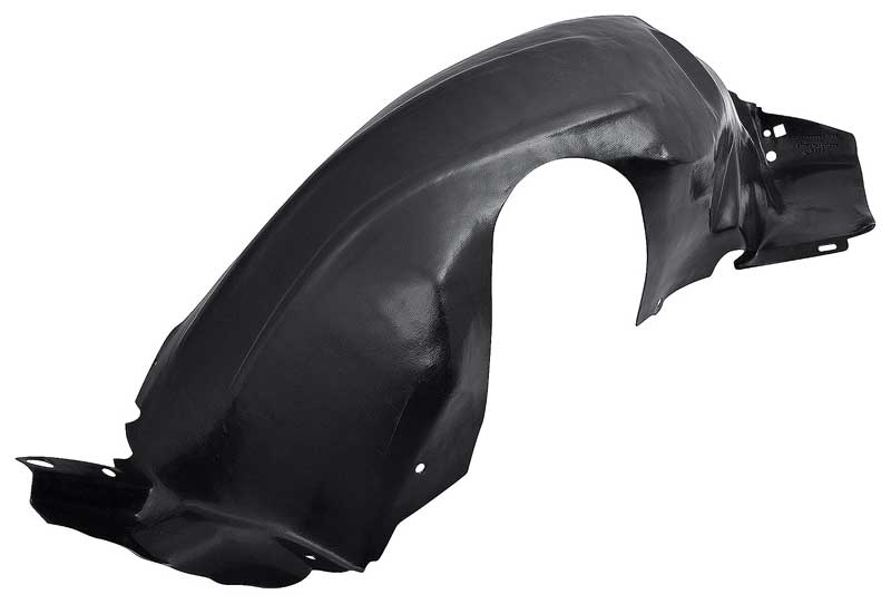 Reproduction of the original style plastic inner front fender liner for use with 1994-98 Mustangs. Also known as a splash shield or inner fender well, this plastic liner is an exact copy of the original part designed to replace a broken or missing liner precisely. Installs beneath the front fender to prevent water and road debris from being splashed into the engine compartment and onto the front cowl and inner fender area. Helps to weatherproof the inner fender area to prevent corrosion of underbody components from road salts, water, and other debris.