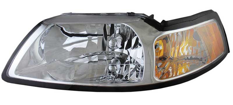 Reproduction headlamp assemblies for 1999-00 Mustang models. Each assembly is a direct replacement of the original and will fit and function just as the factory intended. Also features a molded reflector along with a removable bulb (included).