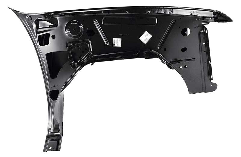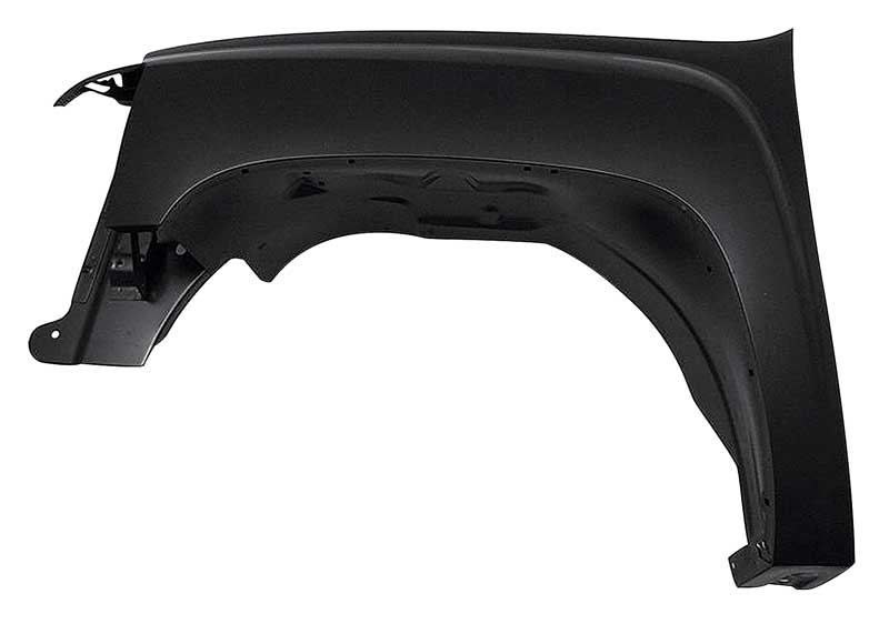 Reproduction front fender for GMT900 series 2007-2013 Chevrolet Silverado 1500, 2007-2014 Silverado 2500/3500, and 2009-2013 Silverado Hybrid models. Each front fender is manufactured in stamped steel to OEM specifications, ensuring an authentic appearance and fit. This fender comes finished in black EDP coating for rust prevention. Replaces OE # 22768375, 25819542 or Partslink # GM1240341.