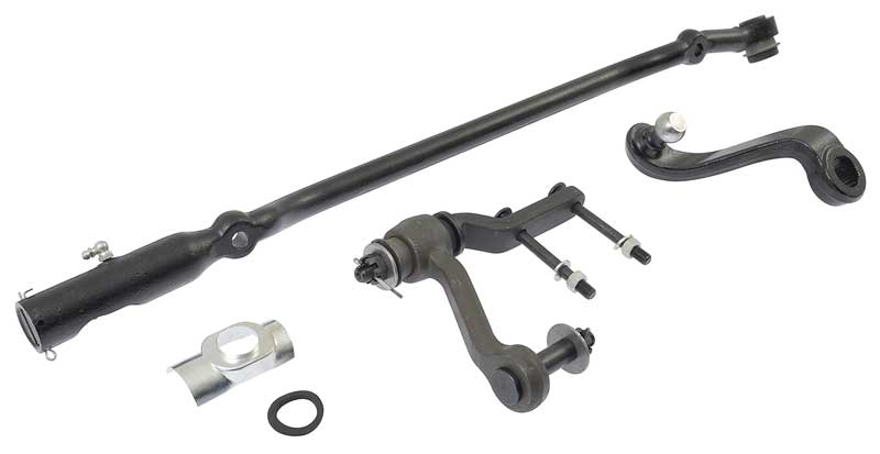 Restore precise steering to your 1955-57 Chevy Bel Air or passenger car with this high-quality reproduction manual steering linkage set. Designed to replace the stock components on manual steering-equipped vehicles, this kit is also ideal when converting from the old power assist style control valve and slave cylinder system to a more modern power steering pump and box setup. Compatible with 500 Series, 605, and 670 conversion gearboxes, each component features a durable black painted finish for long-lasting performance and an authentic appearance. Not for use on stock power assist equipped vehicles that have the old control valve and slave cylinder steering system.