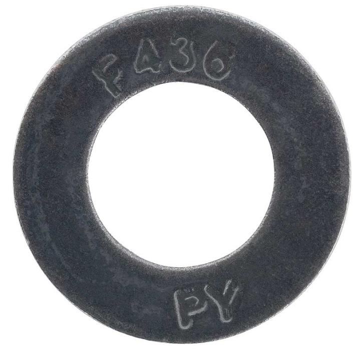 7/16" F436 Washer. ASTM F436 covers the chemical and mechanical requirements for hardened washers in diameters ranging from 1/4? to 4? inclusive. These heat treated washers are for general purpose and structural use. For use with our RL7 and RL7A leaf spring U-Bolt kits. Made in USA. Sold indivdiually.