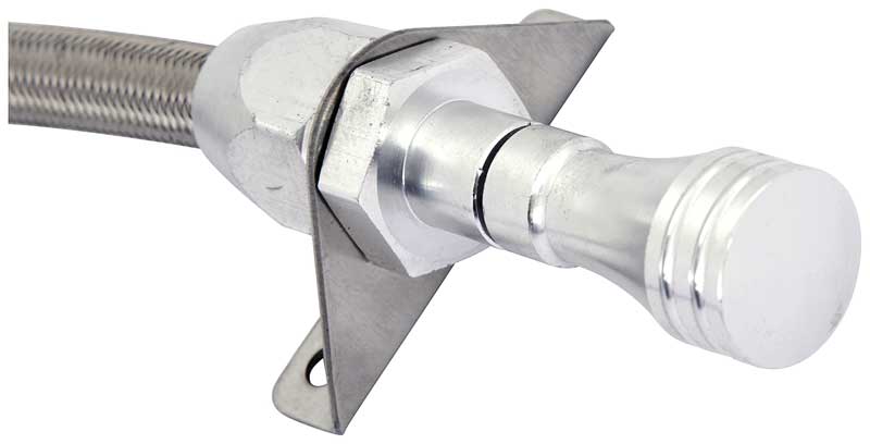 This flexible transmission dipstick features an aluminum handle, steel braided housing and a teflon dipstick. It fits push-in style transmissions with an o-ring seal.
