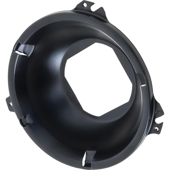 Reproduction of the original square-hole style headlamp mounting bucket, engineered for use with various 1958-82 GM vehicles equipped with 5-3/4" round quad headlamps. This bucket allows precise beam alignment and securely retains the sealed beam unit using three mounting tabs that connect to the headlamp trim ring. Designed to replicate GM part numbers 5965890 and 5950513, this assembly is essential for a functional and factory-correct front-end restoration.